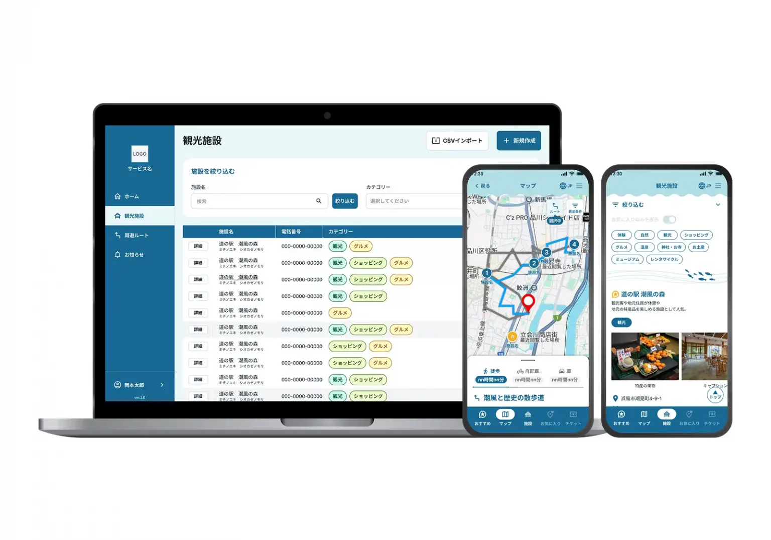 【観光DX / 観光MaaS開発事例】本サービスをご利用いただくことで、観光地域づくり法人(DMO)・自治体様は旅行者向けにおすすめ周遊ルートを提案することができ、旅行者の周遊促進が図れます。旅行者もスマートフォンでお手軽に周遊ルートの設定が可能です。また、観光以外にもまち歩き・食べ歩きイベントやスポーツイベントなどにもご活用いただけます。Webアプリのため、アプリのインストール不要でお使いいただける観光Webアプリのご紹介です。